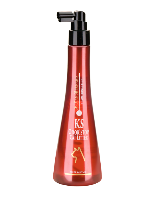 INSTRUCȚIUNI DE UTILIZARE: pentru a neutraliza mirosurile neplăcute care provin din fecale și urină, aplicati spray-ul KS Odor’Stop direct pe acea zonă. Pentru acțiune preventivă, pulverizati asupra conținutului proaspăt curățat al tăvii pentru pisici.